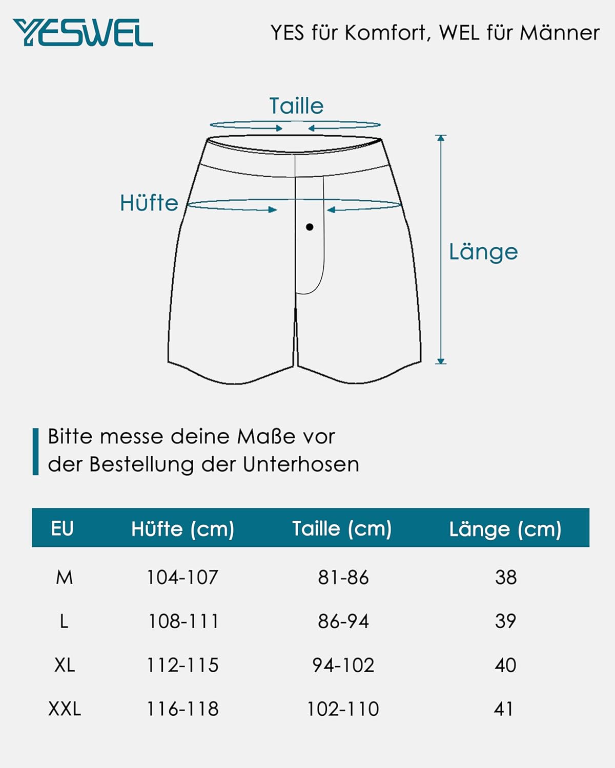 Unsere Boxershorts haben Größenangaben. Bitte beachten Sie die Größentabelle, welche Sie auf den Bildern an der Seite finden.